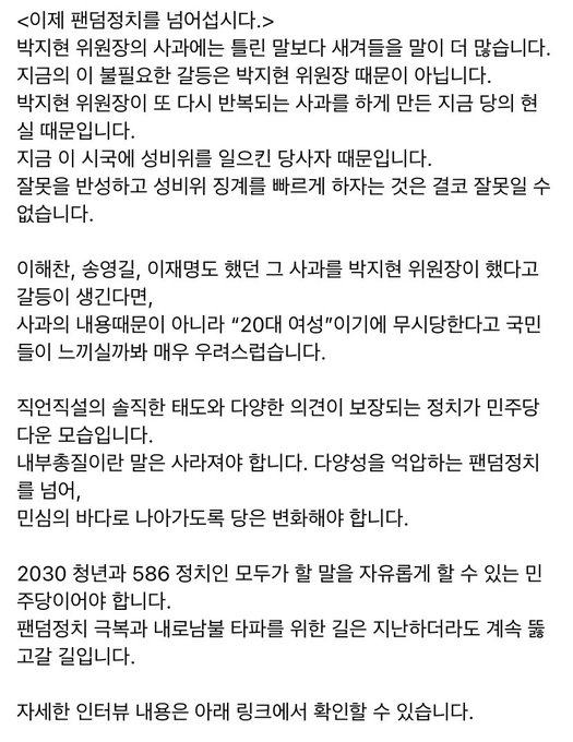 #박지현을_지키자 민주당의 유구한 팬덤정치는 비판받은 지 아주 오래되었답니다^^